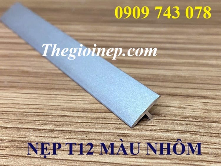 Nẹp T12 Nhôm Màu Nhôm là sản phẩm Nẹp Trang Trí được sản xuất từ chất liệu nhôm. Biên dạng sản phẩm chữ T, xi mạ màu nhôm bạc. Ứng dụng thi công chỉ trang trí nội thất xây dựng, các hạng ốp lát sử dụng nhiều.