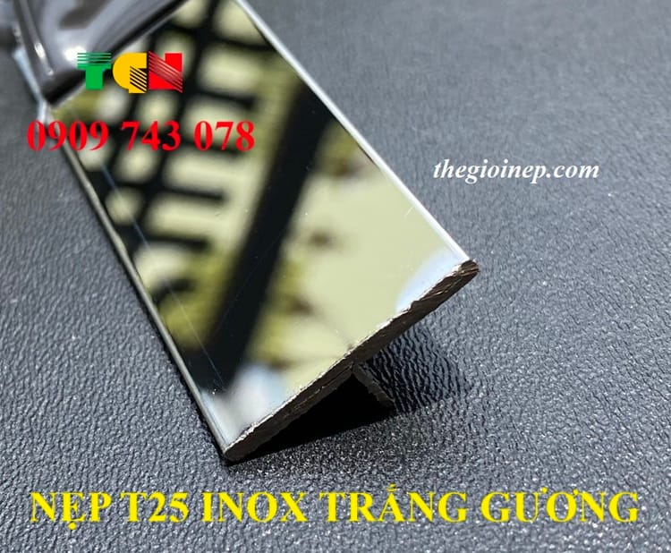 Sản phẩm nẹp T25mm inox trắng gương được ứng dụng nhiều trong trang trí nội và ngoại thất cao cấp